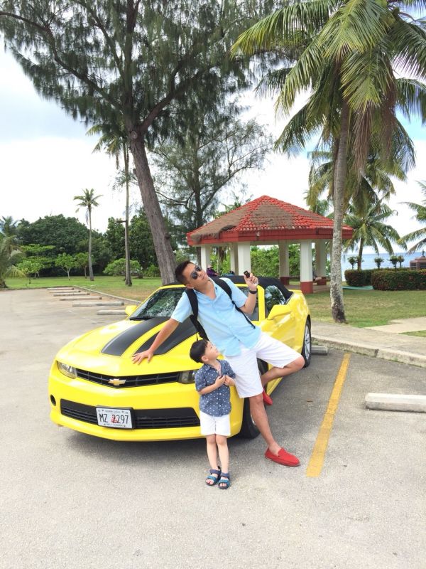 來到關島,一定要租車玩,尤其帶小孩出門 , 真的是開車最方便了, 大量採買購物, 還有小孩攜帶用品, 當然是都往車上丟就對了~~來到這裡好像都是自助加油站, 小孩看到大黃蜂要加油了~特別開心興奮~