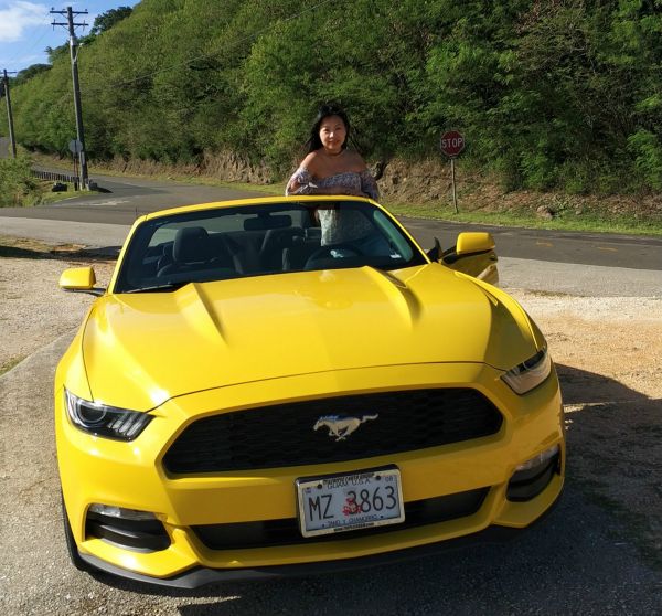 第一次黎關岛我俩便有幸被抽到關岛之家舉辨'咖'遊戲可免费租車一日遊,一日租KIA,一日補差额$75租MUSTANG 開蓬跑車,实在大開心了。这跑車還是2017年。第一次揸左軚和跑車,心情難免有点緊张,但租車实在太方便,喜欢幾時去什么地方都可以。環岛遊更是爽YY.