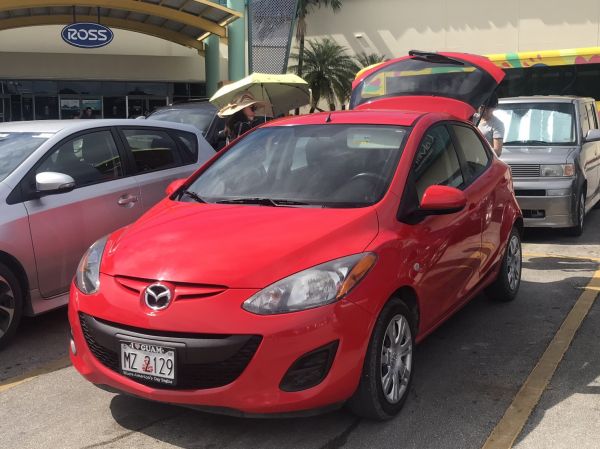 我們選擇的【 關島EZ租車趴趴走】位在皇家蘭花飯店的2樓,租的車型是外型搶眼的小紅-Mazda2,馬力強大很好開,空間也很ok,裝KMART或是梅西百貨的戰利品都綽綽有餘,尤其放我們4人的4個行李箱將將好。