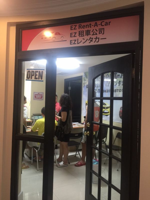 EZ租車在蘭花飯店二樓,租車公司人員會在約定好的時間拿你名字的牌子在飯店大廳等,然後送你到EZ公司去簽約取車。