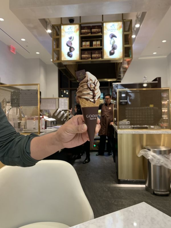 杜夢灣有godiva冰淇淋店,一支6.95美金,很綿密細緻很好吃,杜夢灣不但可以逛街購物血拼,也有很多美食可以讓遊客大飽口福,我們也在杜夢灣花了不少時間跟金錢祭拜五臟廟,而且還想繼續吃喝玩樂
