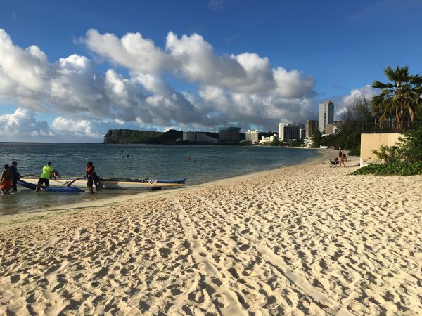 杜夢灣的海水真的很藍又很清澈,選擇飯店時建議一定要選鄰近沙灘的飯店,每天早上都可以享受美好的風景! 杜夢灣的沙子很細,踩起來很舒服,很特別的是,雖然天氣很熱,但是沙子卻不會燙,海風吹拂也不會有黏黏的感覺,味道也沒有甚麼海味,很適合讓人坐在沙灘上享受一整天的空閒,非常推薦來關島一定要來海邊玩一下!