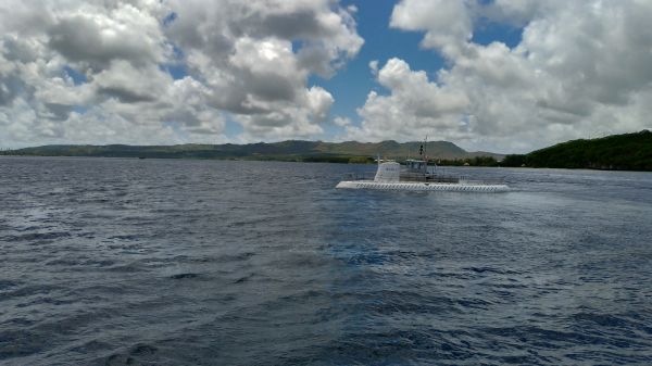 關島有很多水上活動,但潛水艇是一個相當特別的經驗,不敢玩潛水或是帶長輩、小孩的可以參考看看!⛴⛴⛴ 指定時間會有接駁車從各個飯店載到碼頭,再從碼頭轉坐接駁船到達坐潛水艇的地方! 導遊會用英文跟日文介紹,另外也有預錄的中文翻譯!