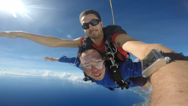 第一次體驗高空跳傘 非常緊張又刺激 一躍而下享受失速的感覺 馬上教練便會穩定方向並請你幫雙手打開 享受風的環繞及關島的美景 教練還讓我體驗拉傘的感覺 一路上也有說有笑 非常值得體驗 而且一定要買影片回家珍藏!!