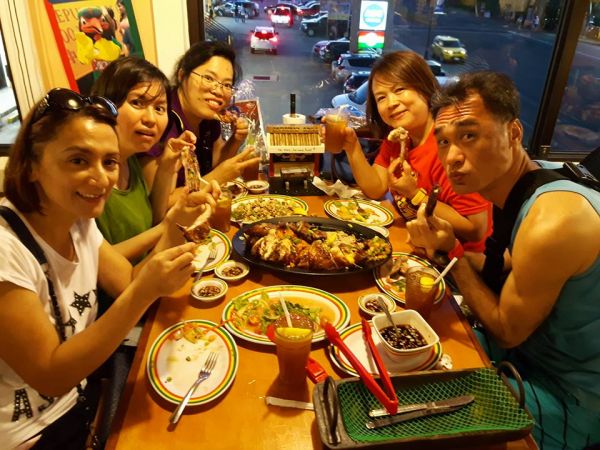 牙買加烤肋排: 走出悅泰飯店後,我們一行五人被香噴噴的烤肉味給吸引著,猛吞口水的前往位於二樓的牙買加餐廳,飢腸轆轆的我們點了餐廳裡最受歡迎的幾道菜,其中豬肉肋排套餐及烤香蕉冰淇淋這兩道是我們讚不絕口的料理;烤肋排真的是美味又多汁,連沾在手指上的醬料都不放過的硬要舔乾淨,而底下鋪陳的紅豆飯,因有肋排的醬汁更能襯托出米飯的芬芳,烤香蕉的口感很奇妙的像地瓜,搭配上香草冰淇淋及奶油,讓人吃了意猶未盡,好想再續盤喔!還好出發前一天有買到關島之的優惠卷及馮2017關島路跑號碼布又增送一杯芒果鳳梨飲料各一杯,真是太划算了,這是在關島的第一餐,也是最滿意的道地料理。