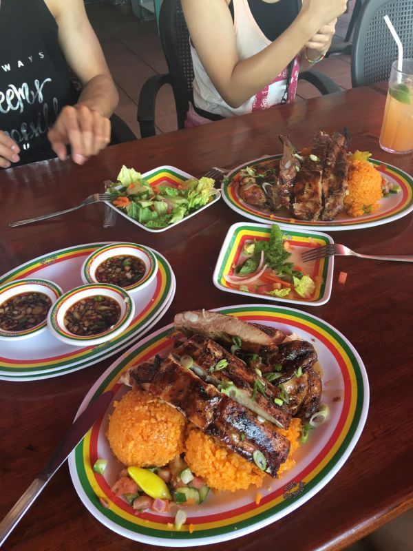 最後兩晚我們入住蘭花飯店 旁邊就是牙買加燒烤 口味燒烤跟煙燻的味道 橘色的米飯非常香 也大推蘭花內的Tony肋排 入口即化且偏鹹甜 十分好吃