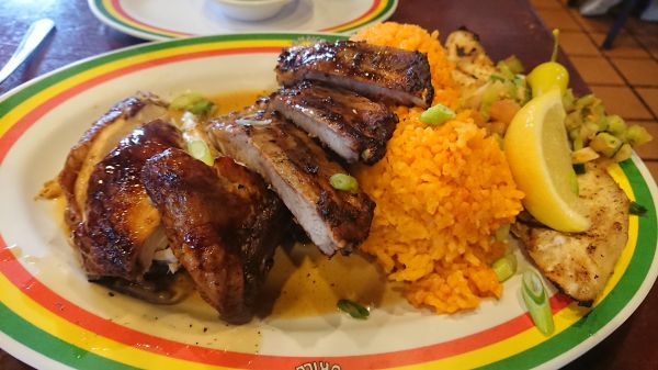 如果一定要選擇一間非去不可的BBQ,牙買加燒烤是我們心目中的第一名。我們在回家的最後一晚去了蘭花酒店隔壁的牙買加燒烤,很觀光客的點了大家都推薦到雙拼+紅豆飯&紅米飯,烤肋排讓人有意外的多汁不乾柴,帶著些微的辛香料,讓人很想連骨頭都一起啃下肚,烤雞的部分也是軟嫩入味,帶著些微焦香的外皮,超級美味;服務人員推薦的香蕉飲品也超級好喝,很值得一再造訪。服務人員隊小孩耶很友善,一入座就直接提供兒童畫紙(上面標準了兒童餐)跟蠟筆讓幼兒打發時間真的很好用啊!推推!