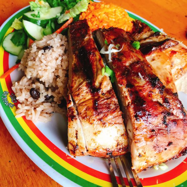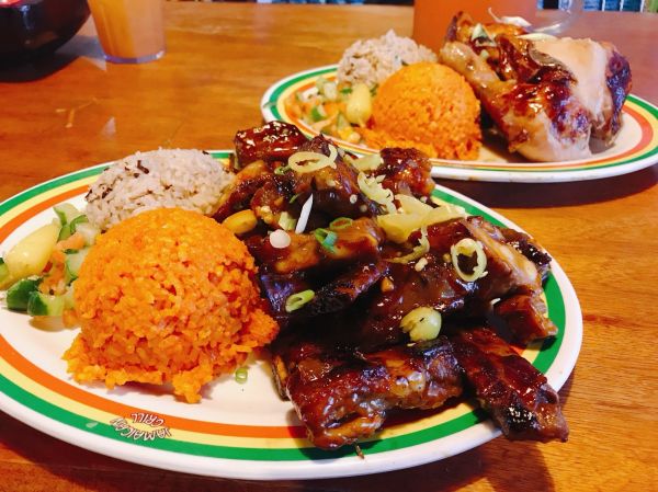 牙買加燒烤是我們踏上關島領土的第一頓晚餐BBQ,吃的是雞排與豬肋排,搭配紅米與紅豆飯的風味套餐。燒烤口味獨特,份量十足,很適合全家一同分享。