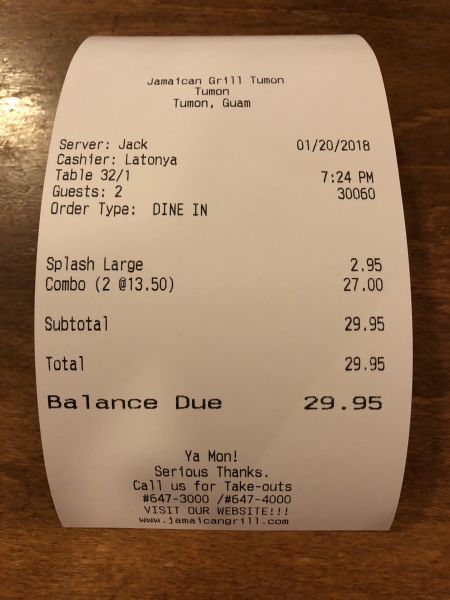 牙買加烤肉在當地很有名 連導遊都跟我們說必吃必吃~ 我們去的是蘭花旁的分店 沒有預約的情況下大約等個15分鐘 就會叫到你囉! 他們餐點有羽量級的對於我們吃不慣大份量的人 真是一大福音 我超推薦他們的雞肉真的是超級無敵嫩 又入味 不喜歡一直咬的朋友可以點 他的的招牌飲料也很好喝喔. 來到關島一定要來品嘗看看 住悅泰步行過來大約15分鐘左右很快呢