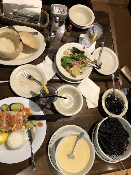 分量超超超超超超大,我們兩人,各點了一份主餐、湯,合點半分沙拉。上餐的速度很快,來不及取消.......份量真的太多了。