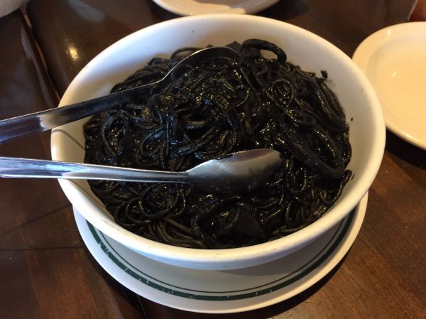 必須提醒您墨魚麵的份量真的很大!大概是可以四個人平分的那種份量,所以建議你們多一點人一起平分,才不會點太多吃不完,另外pizza的部分也可以選擇兩種口味來做,才不會太膩吃不下,但是個人覺得食物普普通通,吃多了蠻膩的,墨魚麵還不錯,可是吃完牙齒很黑哈哈哈要清理蠻困難的,不過食物份量很大很適合大家一起吃!