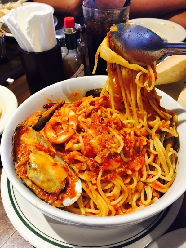 第三次到關島,每次來必到卡布里橋莎,墨魚麵必點~海鮮義大利麵和瑪格麗特pizza朋友也說超好吃。尤其吃墨魚麵一起拍照留戀真的很棒~哈!