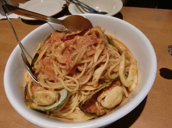 海鮮義大利麵是店員推薦,很多人去Capricciosa都點這個,滿滿的海鮮,份量超驚人,完全可以4人分食吃飽飽。