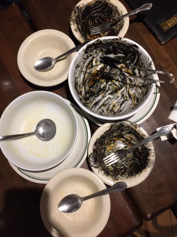 在網路上赫赫有名的墨魚麵,是此行必嘗美食之一。 因為買了餐券有30美金額度可以消費,點了墨魚麵原本想再點個披薩給一家三口吃, 幸好只點了墨魚麵,實在太大份了,實在太大份了,實在太大份了,因為很重要,所以要說三次。 一份墨魚麵,大概是三~四個大人的份量吧!我們二大一小在我勉強開外掛終於吃完,但也無法再進食了。 會將墨魚麵吃完也是因為實在好吃,連一向吃不出美味食物的我,也能感受到墨魚麵的美味。