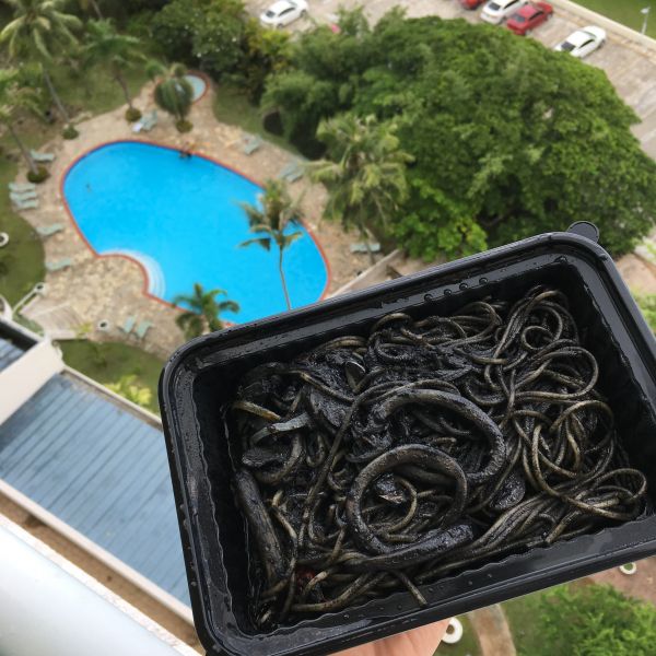 溫馨小提醒:吃完墨魚麵隔天上廁所時,不要被自己的便便顏色嚇到喔! 因為整個馬桶都會變黑色的!!! 哈哈哈