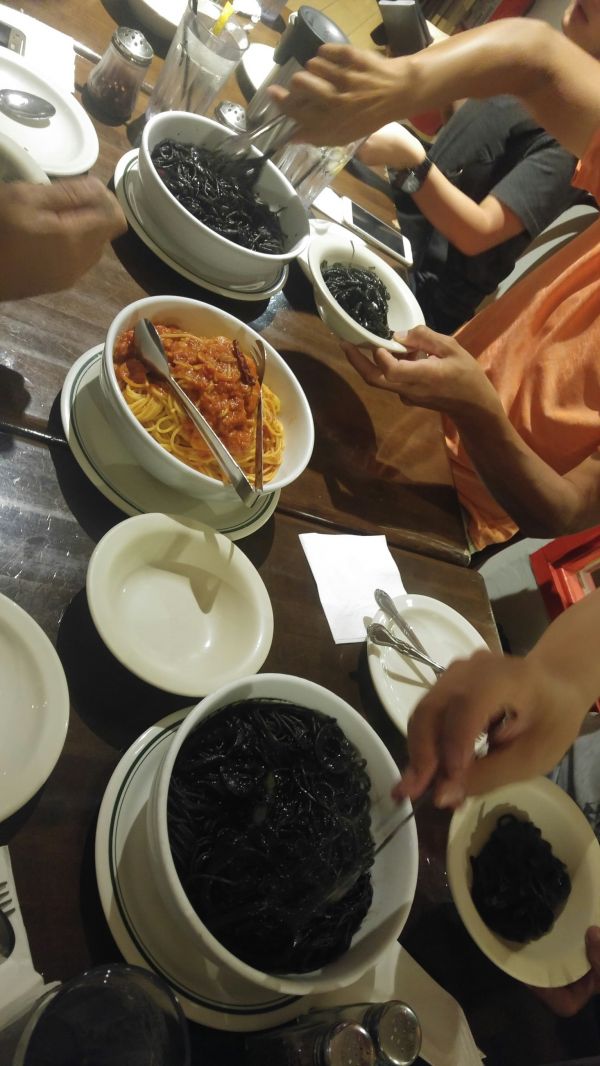好黑的墨魚麵阿~~ 當卡布里喬沙的鎮店之寶 墨魚麵上桌時,每個人都發出了讚嘆!