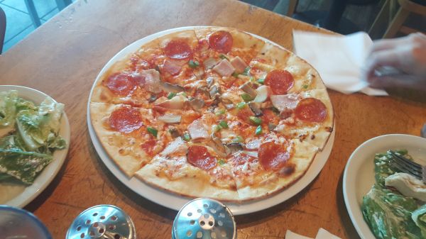 來這裡一定要吃它們的墨魚麵,跟台灣的真的一點都不一樣,味道很夠很好吃!但是,切記一定要三四個人分食,不然絕對吃不完!當天除了墨魚麵之外,還點了燻肉披薩,就沒墨魚麵這麼佳,不過餅皮很脆,下次大家來可以點其他的口味試試!