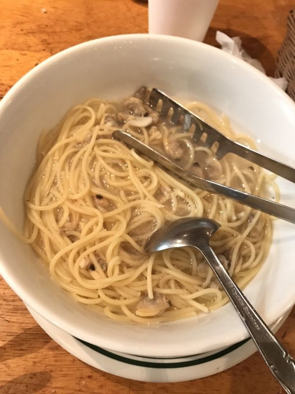 這間義大利麵店在關島有許多分店,在台灣也有(聽說口味有些許不同),因為沒在台灣吃過先來這邊嘗鮮看看。 我們點的例湯及招牌的墨魚麵,他們的份量十分巨大,建議有小鳥胃的女朋友,千萬不要進餐廳很興奮的點了兩道主餐,絕對會讓你打包回家。 口味部分,濃湯口味不會太鹹且很濃郁,搭配麵包食用整個絕配,湯配料中還有蛤蜊,算是滿豐盛的濃湯;墨魚麵的口味算中上,不到頂好,但搭配份量及價格算是cp值相當高的一道料理,他的墨魚麵是真的是ink喔。