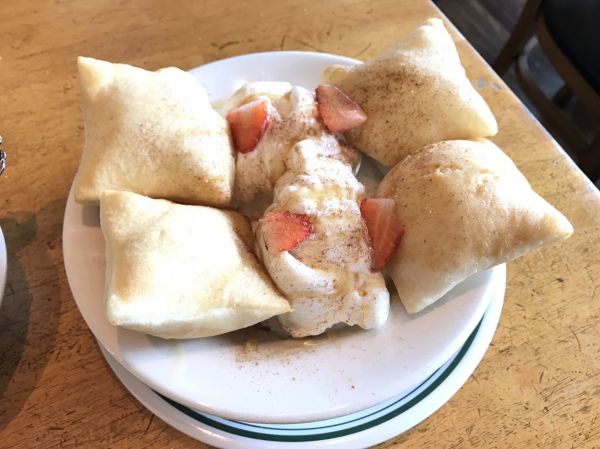 第一次是晚餐時間,主要點了S1-Whole Clam... 義大利麵跟Z3-Clam Bread Bowt。分量很夠,兩大一小可以吃得很飽。第二次是午餐時間,點了1-5 Fried Calamari Salad 跟甜點C7 Frittelle。沙拉配著酸甜醬,加上剛炸好的魷魚圈,真的很好吃;甜點也是很特別,炸好的 frittelle 可以包著草莓或冰淇林,真的很好吃。