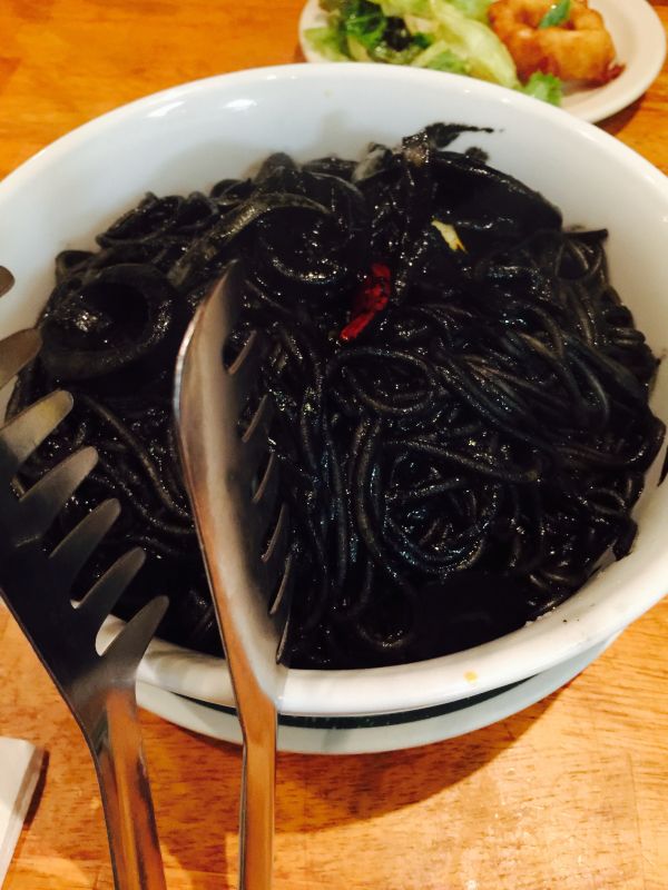 出發之前已經打定主意要吃那黑不拉幾、黑到發亮的墨魚麵~