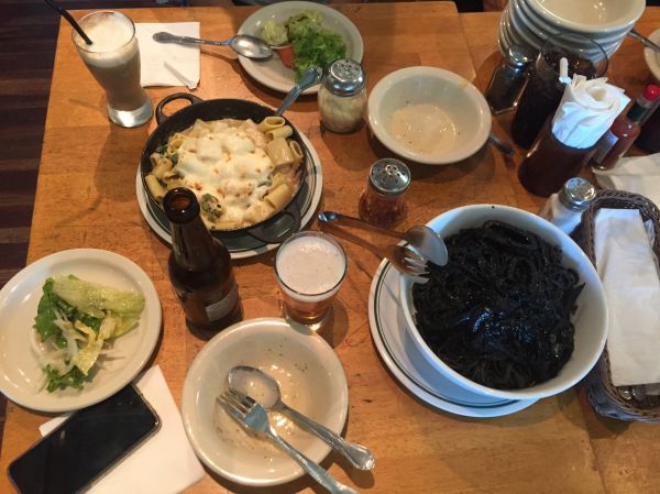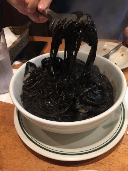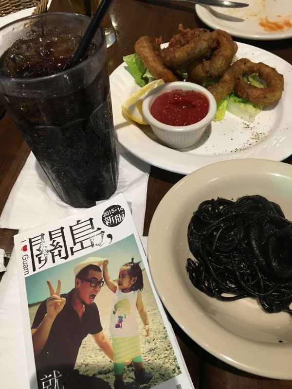 去過關島的朋友強力推薦我們要去吃Capricciosa,因此早已把它列入行程中必吃的一間餐廳,分量也果真是名不虛傳的美國尺寸,兩個人合吃一份主餐就非常足夠了!! 墨魚麵鮮味十足,非常好吃! 但完全是熟人限定呀~ 因為吃了嘴超黑的,哈哈哈