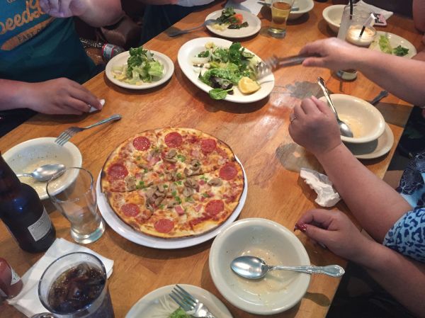 再加點一份pizza, 這樣的份量4個人吃剛剛好~