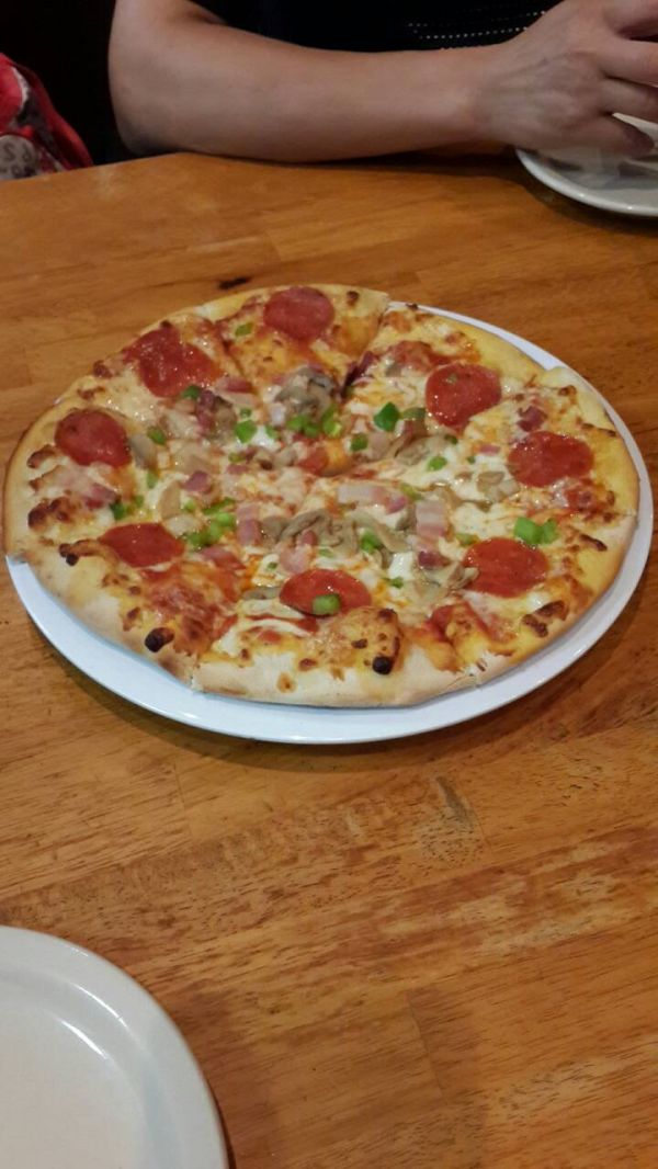 奶油通心粉、招牌Pizza都好好吃,非常迅速的完食!