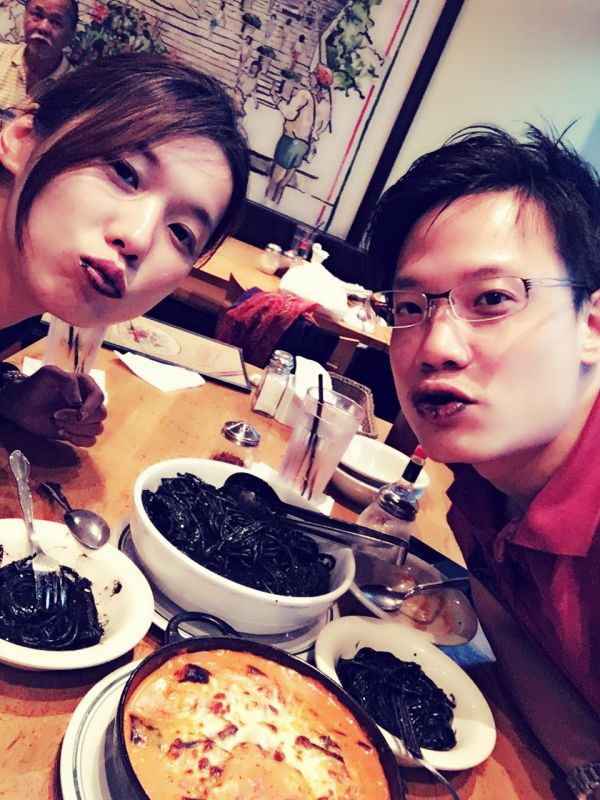 這一天我們選擇了卡布里喬莎作為在關島的最後一天午餐。我們同行六個人點了招牌的墨魚麵和奶油培根,以及一份麻糬起司比薩。麵的份量不少,墨魚麵的口味較加,如果你還想加麵需要多付$5。這樣的餐點六個人吃剛剛好,不過消化完上廁所時請不要驚慌,顏色較深屬於正常消化現象XD