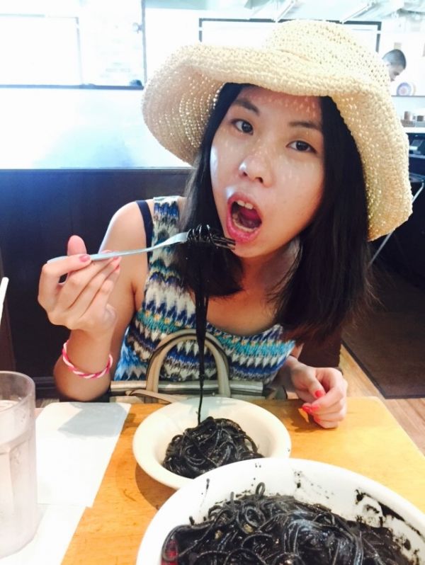 這黑布隆通的墨魚麵果然名不虛傳,份量大到兩個女生都吃不完。