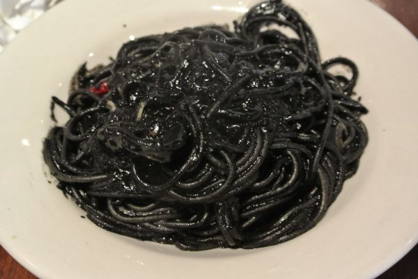 Capricciosa的墨魚麵,也來朝聖ㄧ下這個大家瘋推的美食,不得不說這家餐廳的分量實在是無比的大,點道沙拉當前菜 來的是比頭還大的一盤,當然墨魚麵也是霸王的大碗。 小建議 如果您是兩位成行 胃袋不大的團體可以在餐廳外多攔個幾位路人ㄧ同進去領教Capricciosa的特大餐點。