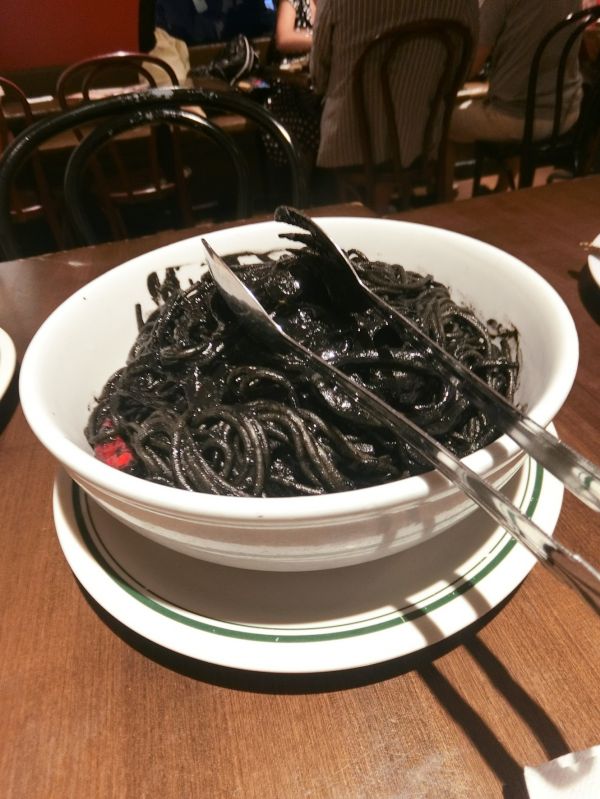 雖然說台灣也有這家義大利麵,但一直聽大家說來這裡必吃。我們沒有訂位於晚餐時間抵達Pacific place分店候位約半小時。餐點份量之多,點了經典墨魚麵及雞肉寬麵,兩大一小根本吃不完。不過墨魚麵真的很推,吃完整個嘴巴牙齒都黑的,甚至隔天代謝物也是黑的,真的不誇張!