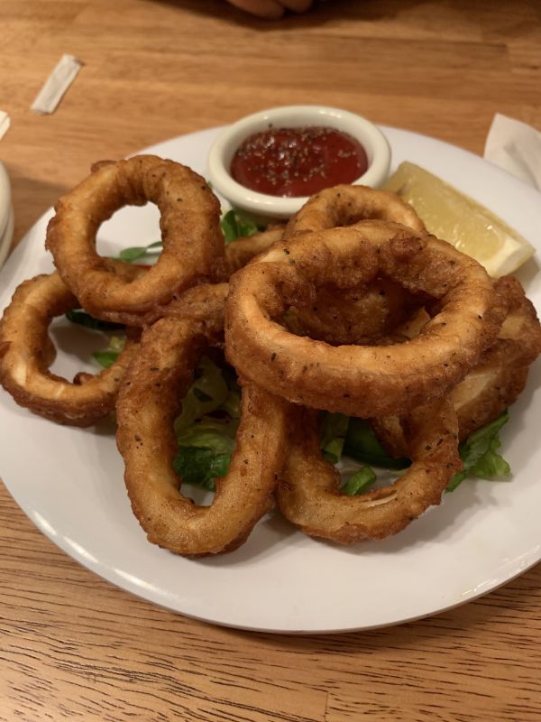 墨魚麵和炸花枝都好好吃~份量超大~ 要記得要先訂位,不然用餐時間會很多人。