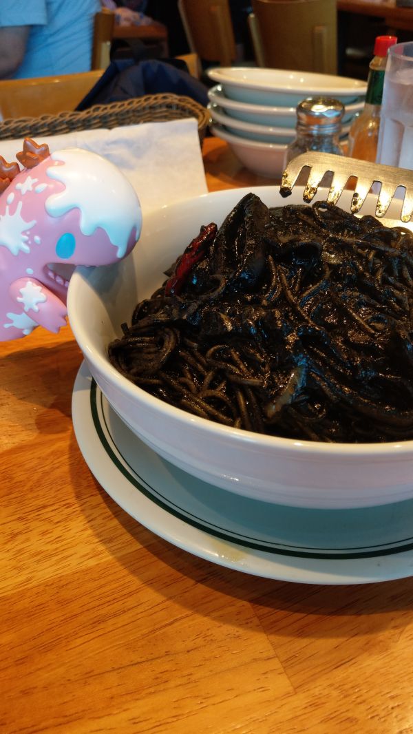 在台灣爬文,大家都推墨魚麵,當然一定要體驗,一走進去,坐定點了墨魚麵,待服務員送來時,我下巴都要掉了,天啊~這份量完全能讓我吃4餐耶,4餐,真的不誇張,難怪一直看到服務員對我竊笑,因為我一個人哪有辦法嗑完這一大碗啦!最後打包回飯店當隔天早餐和中餐,即使加熱過還是很好吃,完全推,來關島一定要去體驗