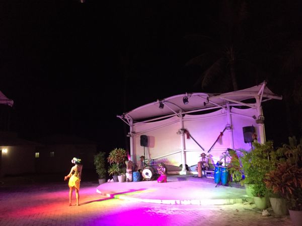 這裡晚餐秀地點就在飯店外靠沙灘的地方,除了外面有漂亮的海景,也有精彩的表演能夠觀看~