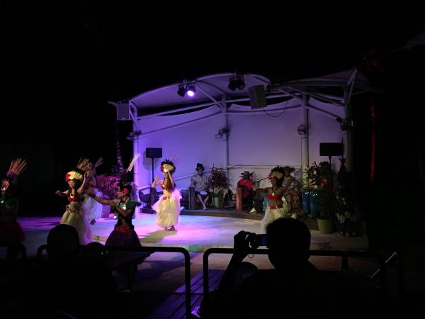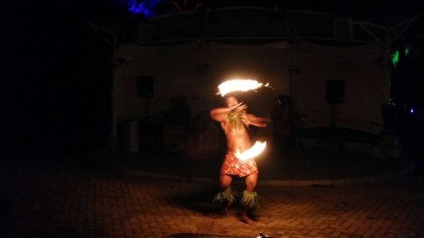 夜色漸黑,燒烤也七七八八的時候,表演開始了,載歌載舞,席上觀眾也被獲邀到台上跳舞,大家都十分投入表現當中!