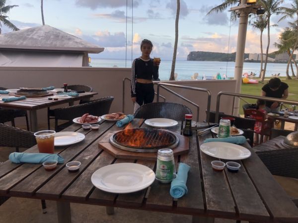 比起查莫洛夜市的BBQ燒烤,我們都更喜歡悅泰飯店自己的BBQ燒烤,還有表演秀可以看。 一旁有自助區小屋,啤酒飲料服務生會親切的詢問是否要續杯。 表演秀差不多快7點就開始了,剛好伴著夕陽落下的美景,是段很美好的回憶!!