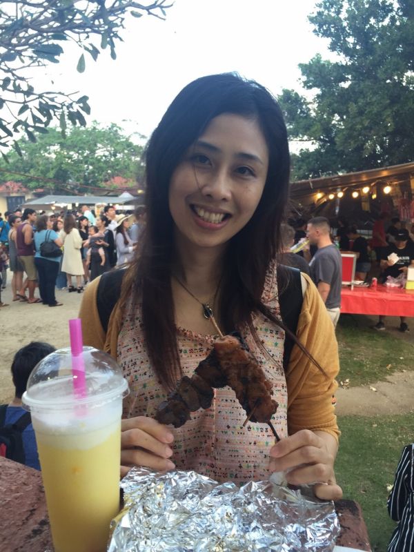 每週三限定的查莫洛夜市,最吸引人的就是kris烤肉攤了,攤位前大排長龍,不過等待的時間不會很久,因為是預先烤好的直接打包帶走,個人非常愛雞肉串,那個醬汁很入味丶真的很好吃,豬肉串還ok,至於牛肉串~同行友人覺得太乾,給的評價並不高,另外推薦必吃的還有夜市的新鮮水果汁,我們點了芒果椰奶~超~好~喝,真心推薦。