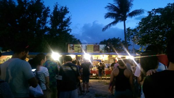有開車的朋友,最好17:30前就到夜市找停車位,因為人車會從四面八方湧進來,一進入攤位區就跟著人潮排隊買了一份Kris的COMBO,烤雞肉串果然好好吃,後來又重新排隊買了好幾串回飯店當宵夜,兩天後吃PROA時,老公還說最好吃的烤肉就在這夜市裡;這裡很有熱帶風情,可付費搭乘黃牛哥遊街,也可聽到當地歌手播放著自已海洋曲風的唱片,大家也都很友善哦