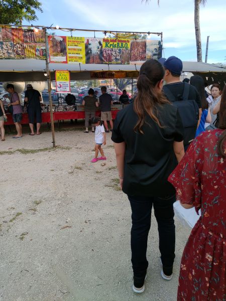 查莫洛夜市裡真是熱鬧萬分,充滿著異國熱情文化,好像所有燒烤攤位販賣方式大同小異,價格也一致,購買便當後,在夜市慢慢品嚐享用,還可以聽live bend,紅米飯及特調果汁不錯。