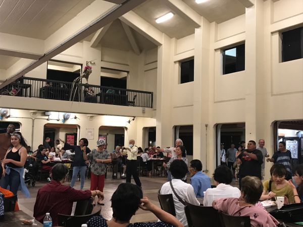 在大會堂裡大家還很愉快的唱歌跳舞,