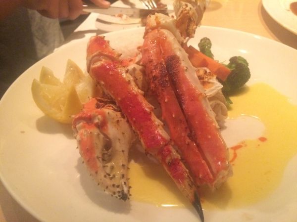 兩個人點了兩份主餐,豬肋排的口感絕的大勝Tony Roma's,但是一起的BBQ雞排和牛排就還好,但是另外點了肋眼牛排,真是太好吃了,我們兩個人吃下口的那一剎那都為之讚嘆!我們只點五分熟,但不會帶血,口感鮮嫩多汁,真的很好吃,如果很多人來一定都要點來試試看。