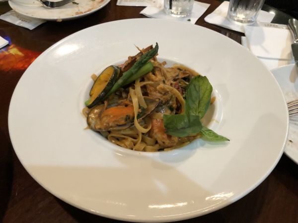 環島的終點站來到了帆船餐廳的亞加納店(看關島之家介紹是說這家比較有位置),一進到店裡跟牙買加燒烤的氣氛就截然不同,比較像是西餐廳的感覺,我們點了一份肋排、一份義大利麵及一份沙拉,在等餐的過程中 隔壁桌服務人員又唱起歌來幫忙慶生,莎拉的醬料十分特殊 完全吃不出來是由什麼食材調配的,單吃味道有點奇妙,但搭著菜吃就會越吃越好吃整盤吃光,肋排的部分也一樣跟前一天的牙買加有很大的差異,如果說牙買加燒烤是粗放型那帆船餐廳就是精緻的燒烤了,餐點的口味很棒,個人認為是在關島的五天裡最好吃的一餐!