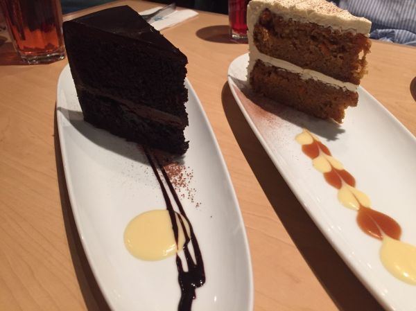 帆船餐廳也是一間值得吃的店,除了晚餐外,也有提供蛋糕,我們預約後等了30分鐘,正餐外我們點了哇沙米巧克力,還有紅蘿蔔蛋糕,很有特色也很好吃,甜甜的巧克力搭配辣辣的哇沙米,很衝突的但很適合的搭配,途中還遇到小朋友過生日,活潑的店員端上蛋糕點上蠟燭,一起圍著他唱生日快樂歌~是間很有氣氛食物也好吃的店