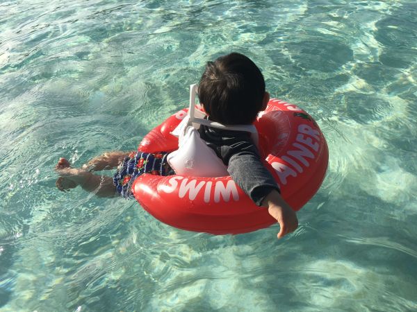 因為有帶小小孩來(未滿一歲),這裡的泳池跟台灣的不一樣 不會有刺鼻的消毒水味,所以很放心的讓小小孩下水去玩~