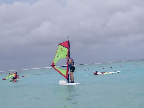 體驗了熱門的風帆、人魚共游,後來發現最喜歡的是在杜夢灣上划獨木舟,這得天獨厚的淺灘可同時享受美景又保持安全性,一出海根本忘了炙熱的太陽,完全融入大自然中,讓人念念不忘。可惜的是獨木舟五點關閉,沒機會體驗在火燒雲下划船,只能在岸上撿到PIC海灘絕美夕陽。