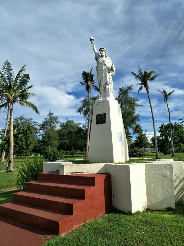對我來說,每個對當地具有特殊意義的東西都值得來看看.... 這是我們到關島,送的市區導覽的第一站,既然是第一站,想必這尊迷你自由女神像對於關島來說是有一定的意義存在的.... 她面對的海洋非常漂亮,正好我們抵達關島的這一天,天氣非常好,天空非常美,所以來到這第一站的感覺也是非常棒的!^^
