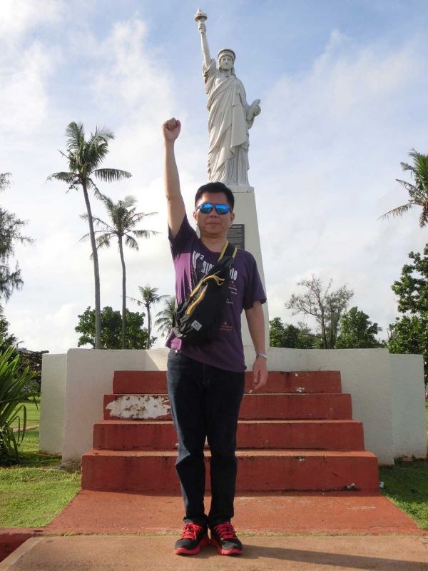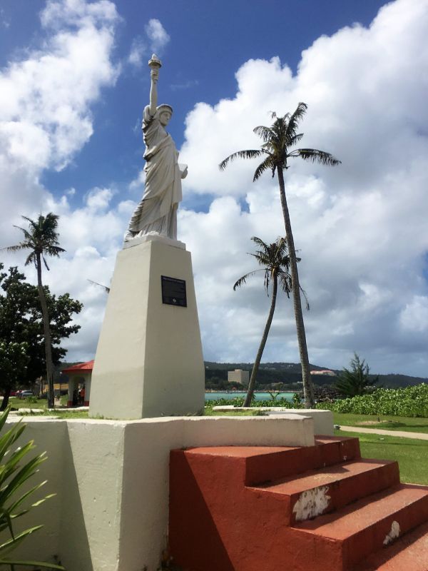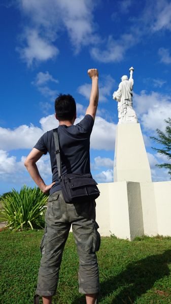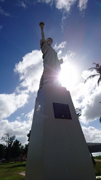 來到關島後的市區觀光第一站 就是“自由女神像” 午後的太陽真的是太熱情了 見到這兩百分之一的神像 雖然不大 但她面對大海 直舉著右手的姿勢 讓我不禁聯想起… 熱血的海賊王 馬上衝上前跟她一起來張 『我要成為海賊王』的合照!