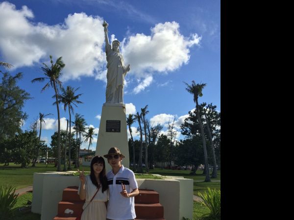 如果有參加市區觀光的你們,就一定會來看看這縮小版的自由女神唷!!! 當初看大家介紹時,一開始的自由女神像是黑色的,原本還小期待一番,但現在已成白色的囉~還有沒看過紐約的自由女神像來關島看迷你版的也是能過過癮啊!!!