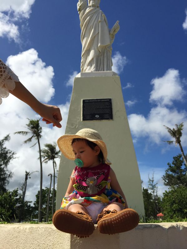 一下飛機,東西先拿去飯店後,我們就開始市區觀光。來到關島就要來朝聖迷你版的自由女神,挑望陽光跟大海,心情依舊亢奮。