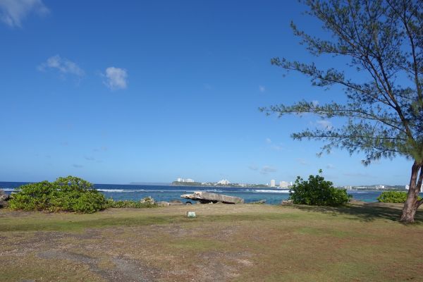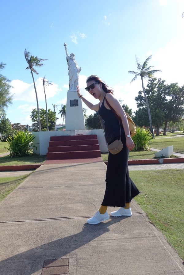 超級迷你的自由女神像,好像每個來到關島的人都會來這邊走走看看,旁邊就是海岸,而周圍的椰子樹也較為稀疏,當天風超級大的,關島12月的天氣讓人覺得很舒服,風大但不熱,非常適合前來旅遊